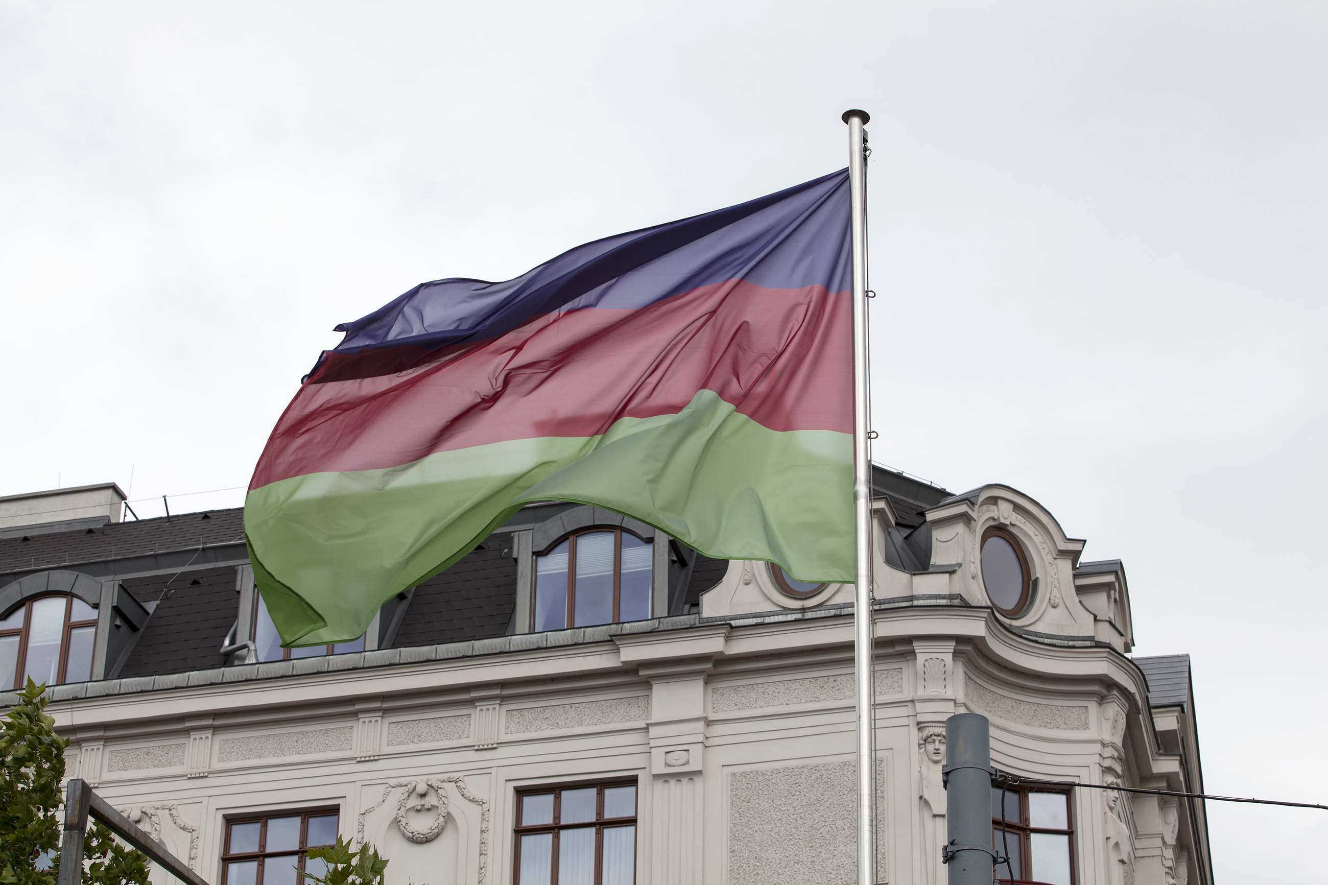 At first glance, seen in isolation and without contextual mediation, the flags may appear minimal or even underwhelming. But they gain complexity when situated within the project’s long lineage of artistic reinterpretations of the flag. A seemingly simple medium becomes a layered signifier, tapping into the flag’s powerful role in our collective unconscious, not merely a tool for visibility and identity, but a site of symbolic residue and political tensions.