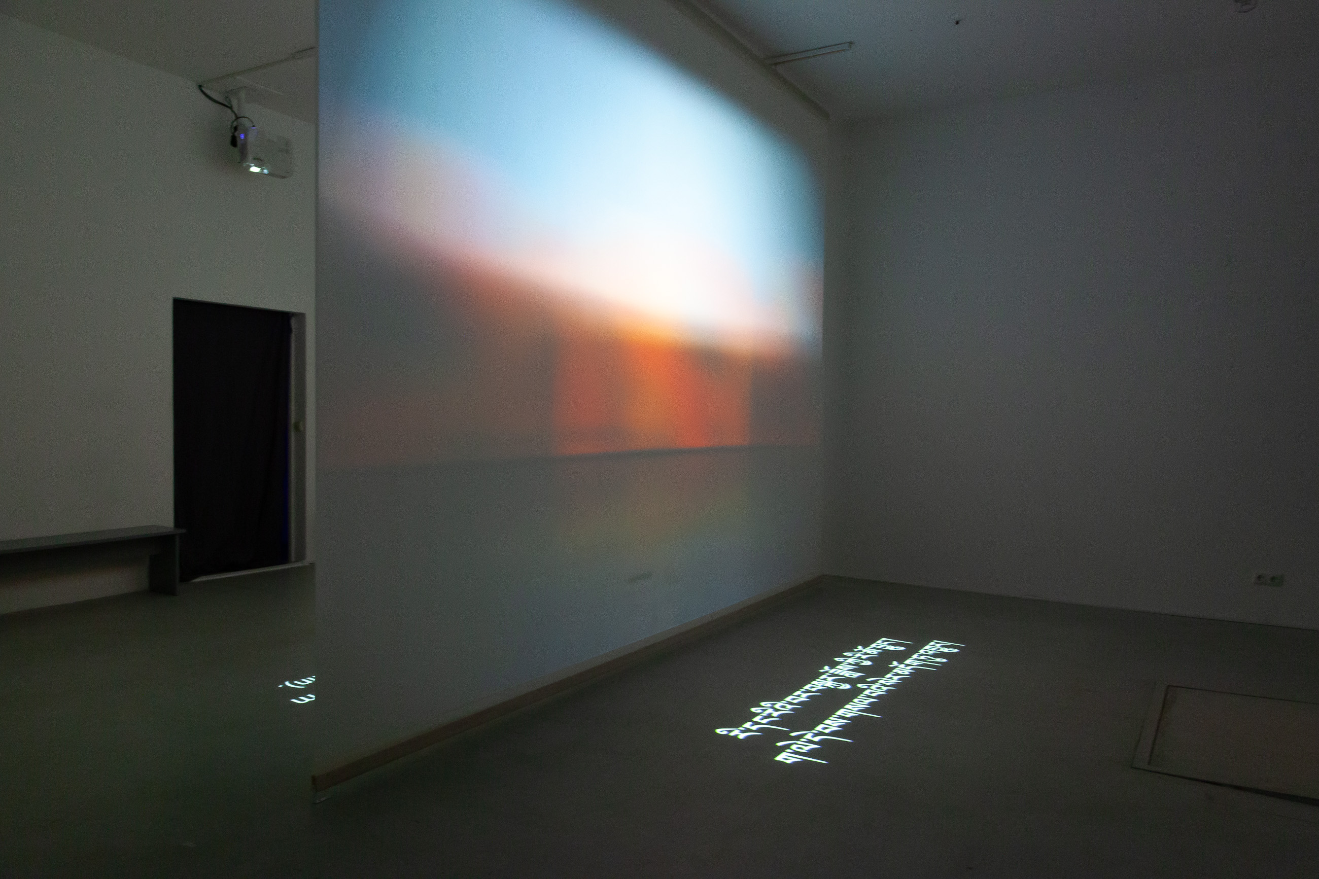 AE: True; discussing transnational networks also reflects the sentiment evoked by KUNSTVEREIN GARTENHAUS. They recently showcased Shen Xinâs exhibition titled âཌŕźŕ˝ŕ˝ŕ˝˛ŕź ཌŕžŕ˝źŕ˝ŕźŕ˝ŕ˝źŕźŕ˝ ŕ˝ŕžąŕ˝´ŕ˝˘ŕźâ (The Earth Turned Green). It was a beautiful video installation and also turned out to be another portal to our encounters in Beijing. In the video, you can hear the artist talking with her Tibetan language teacher about shifts and movements in light and color through her learning the Tibetan language. In Tibetan, when referring to the color of the earth, the word for âgreenâ is the same as the word for the color blue. Blue is partly composed of the word ཌŕžŕ˝źŕ˝ŕź, meaning âbefore,â alluding to what came prior and what has been: the sky and the earth. These beautiful nuances that come to light if you switch from one cultural context or language to another were also the feeling that was a driving motor in our understanding of our role as curators in Beijing, I would sayâtrying to recast power hierarchies as ambivalences, opting for a more conflicted way of presenting that allows multiple modes and vectors of representation to coexist.