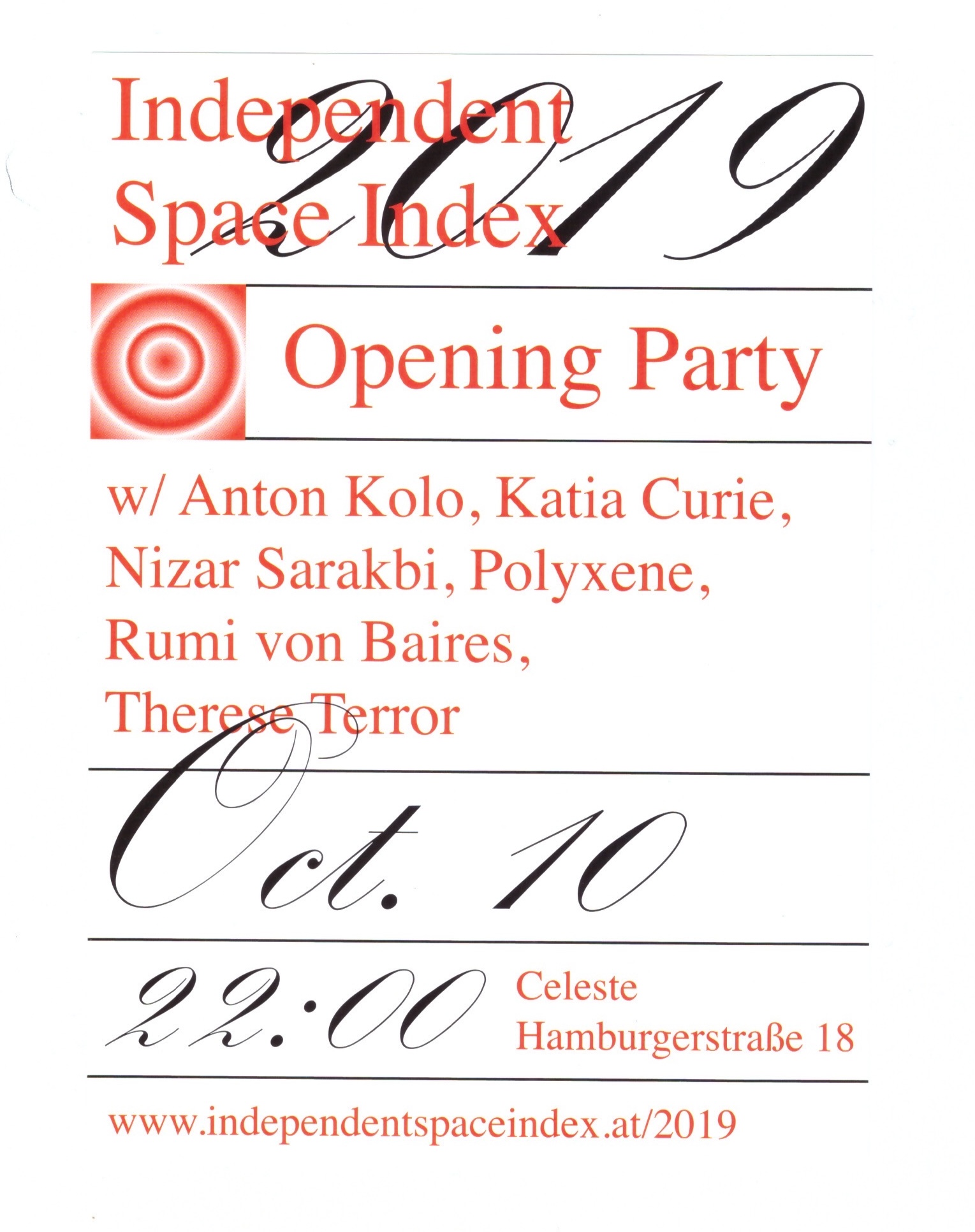 Invitation to the opening party of Independent Space Index 2019