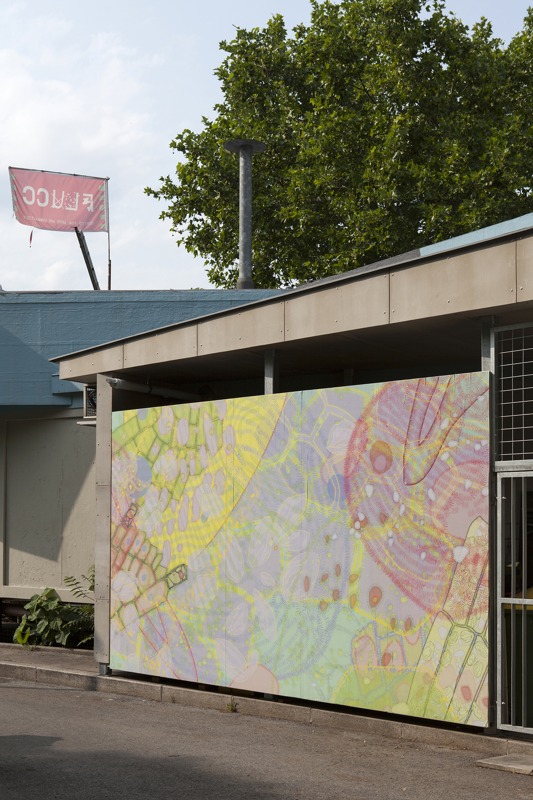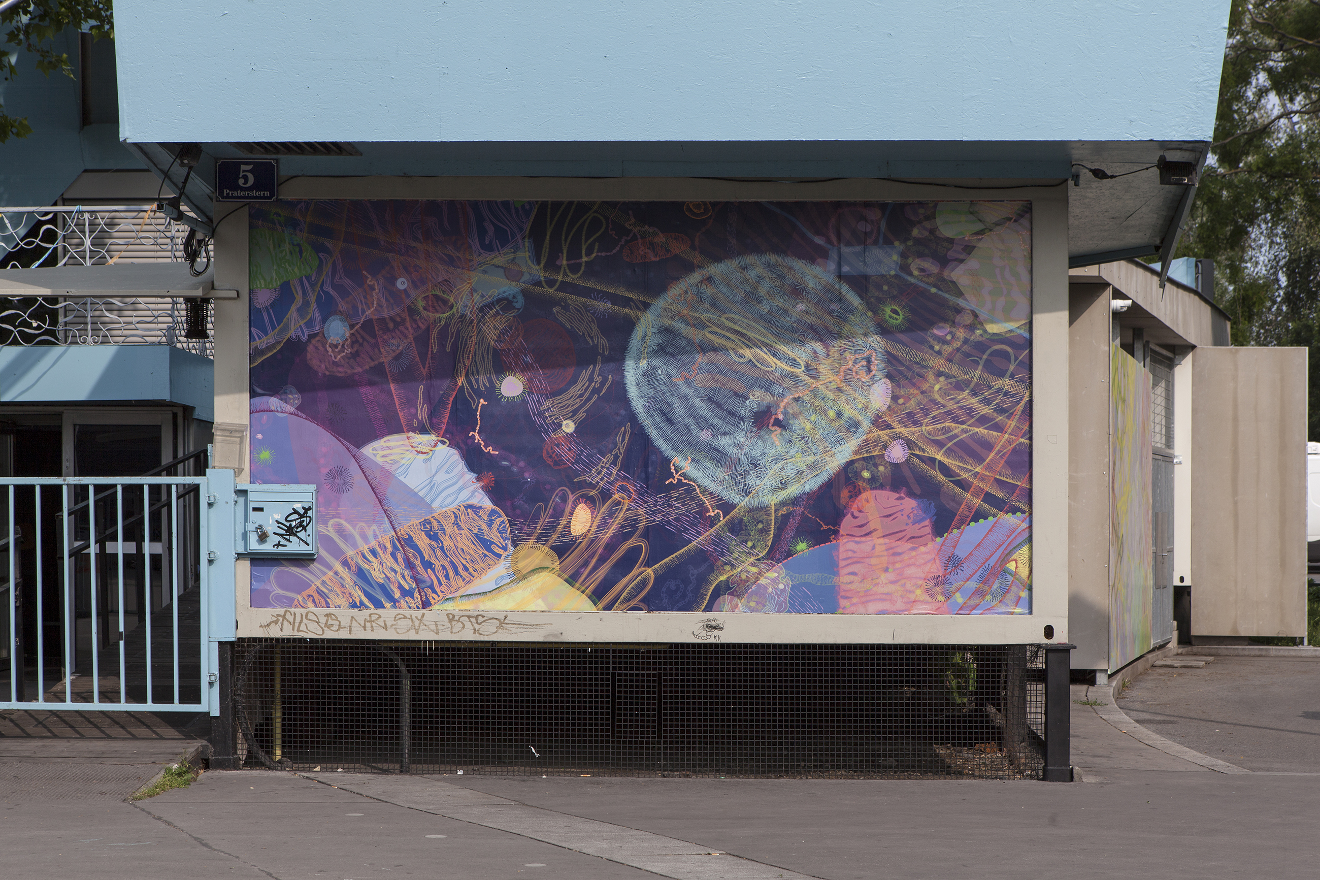 Cells are omnipresent as the building blocks of life, but are not very present in our human perception, as even the smallest (known) cell cannot be seen with the naked eye. While animal cells, plant and fungal cells as well as the more simply constructed prokaryotes, which include bacteria, are similar in many respects, they have special features. On the billboards, strategies of demarcation and permeability are explored in visual form. Where in some places a semi-permeable membrane regulates the exchange of substances, elsewhere it is the resistant cell wall made of chitin that assumes a fundamental function for the organism. In the outdoor area of the Flucc, an urban gardening project with migrant references is being created that allows borrowed plants to linger under a yurt. In addition, a screening of Kyrgyz documentaries will provide insights into ecological issues, which will be discussed with the filmmakers.