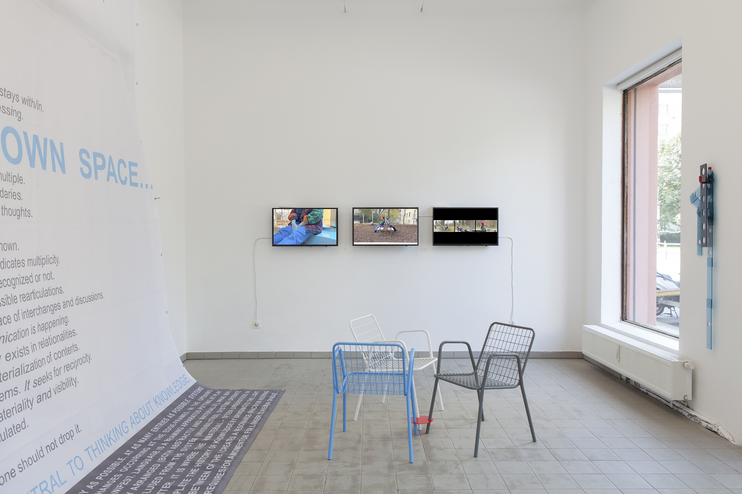 For more than 15 years Ingrid Cogne has been working on the ways in which bodily and spoken languages weld with each other and provoke events and potentialities in communication. The exhibition MÛ au quotidien presents her recent iterations wherein the concept “move and be moved” performs in the everyday through formats of conversation that call for various dramaturgies – depending on the situations at play. Cogne uses the notion “conversation” to qualify live, formal and/or informal communications based on the principle of articulation and circulation of information between individuals. It is an everyday practice and situation.*