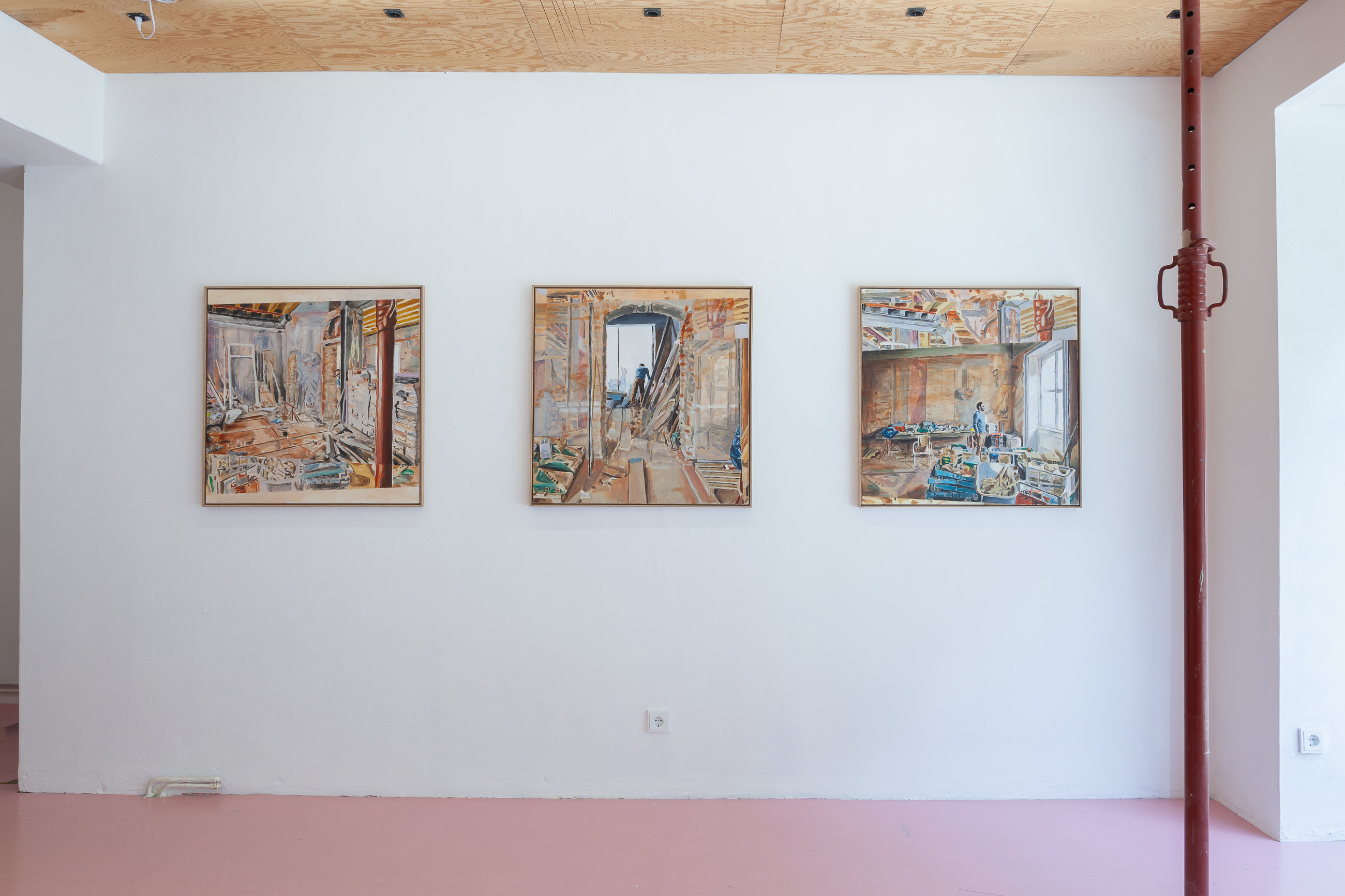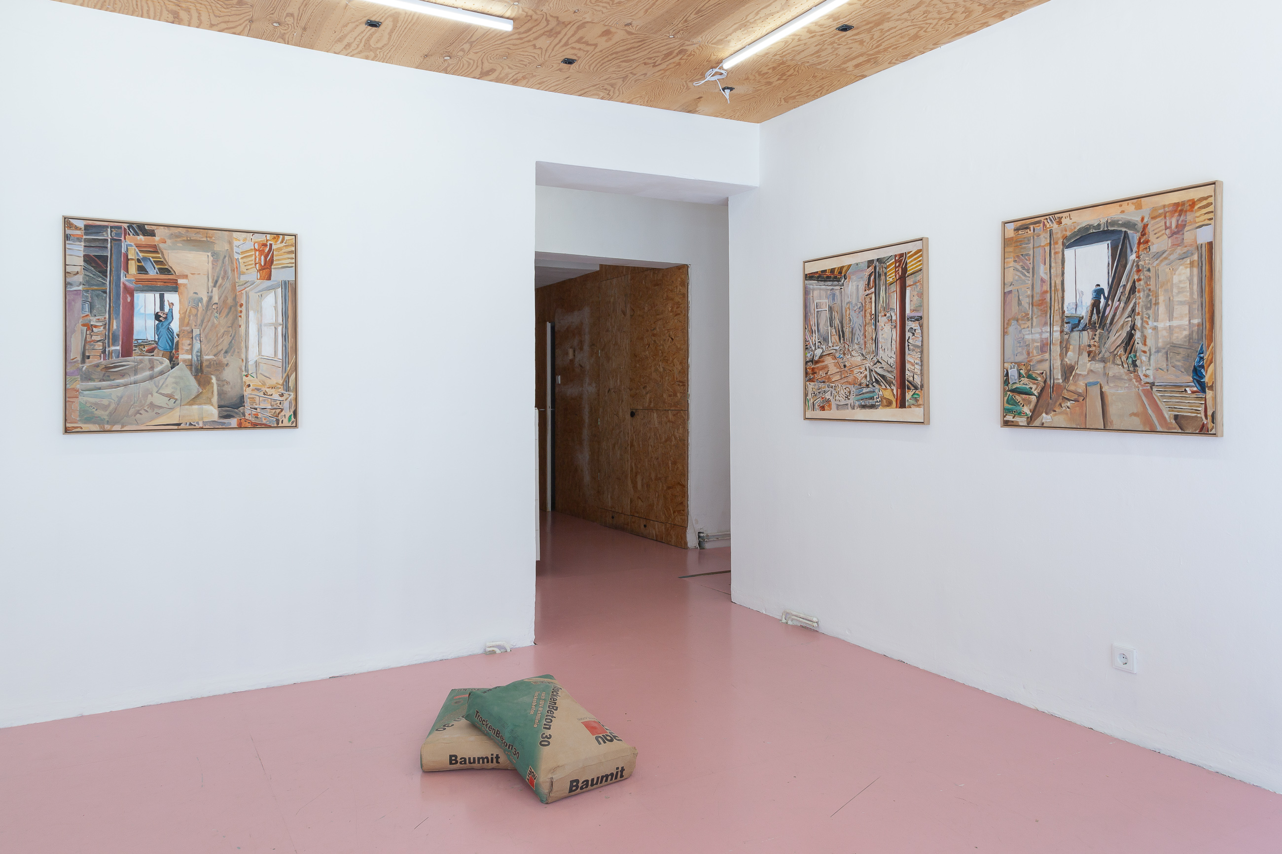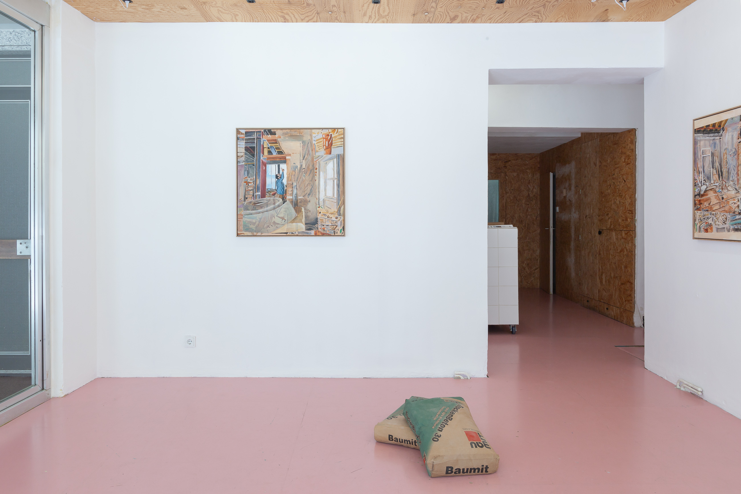 With âKoloman Kann: Andere BaustelleâŠâ, the Kunstverein SUPER is showing a series of paintings by the Viennese artist. Using his methods of picture-in-picture interlacing, of alienated repetitions, Kann portrays a long-time friend in his apartment, which is undergoing extensive renovations. The titles of the pictures indicate that apparently nothing has been missed. Will the fleeting aesthetics be used as an opportunity to reflect on the alternating relationships between incompleteness and perfectionism? Will we take the opportunity to perceive both the chronicle-like quality and the simultaneity of this painting? Or simply the humorous but affectionate gaze of a close friend? Or other perspectives, such as those contributed by the architect Lotte Kristoferitsch as an exhibition text? And then there are the drinksâŠ