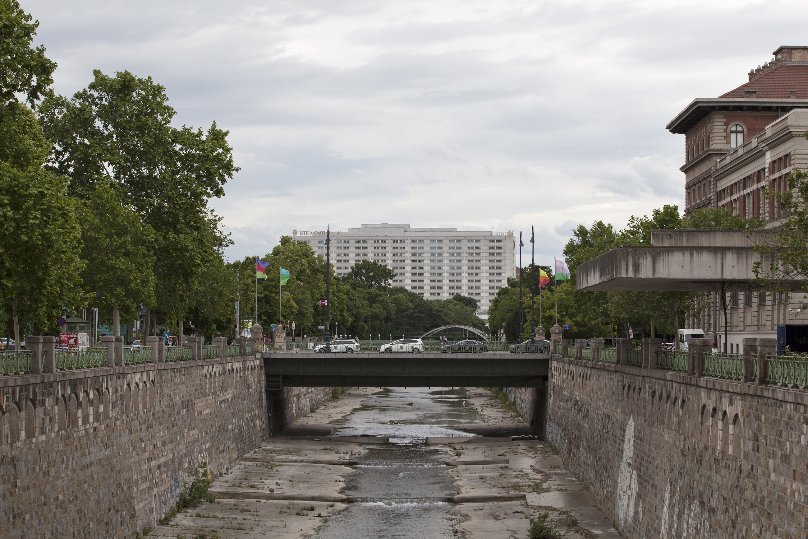 “WEST WIND – When invited to propose a design or designs for the raising flags project, I tried to come up with an idea that worked within the given context. Vienna’s Stubenbrücke, Franz West’s missing sculptures, the Austrian flag, and a certain amount of confusion all seemed like the ideal starting point. National flags are so horribly loaded – hopefully I’ve added some Westian lightness to the classic rectangular divide: hard-edged abstraction with a touch of pink.” (Jonathan Monk)